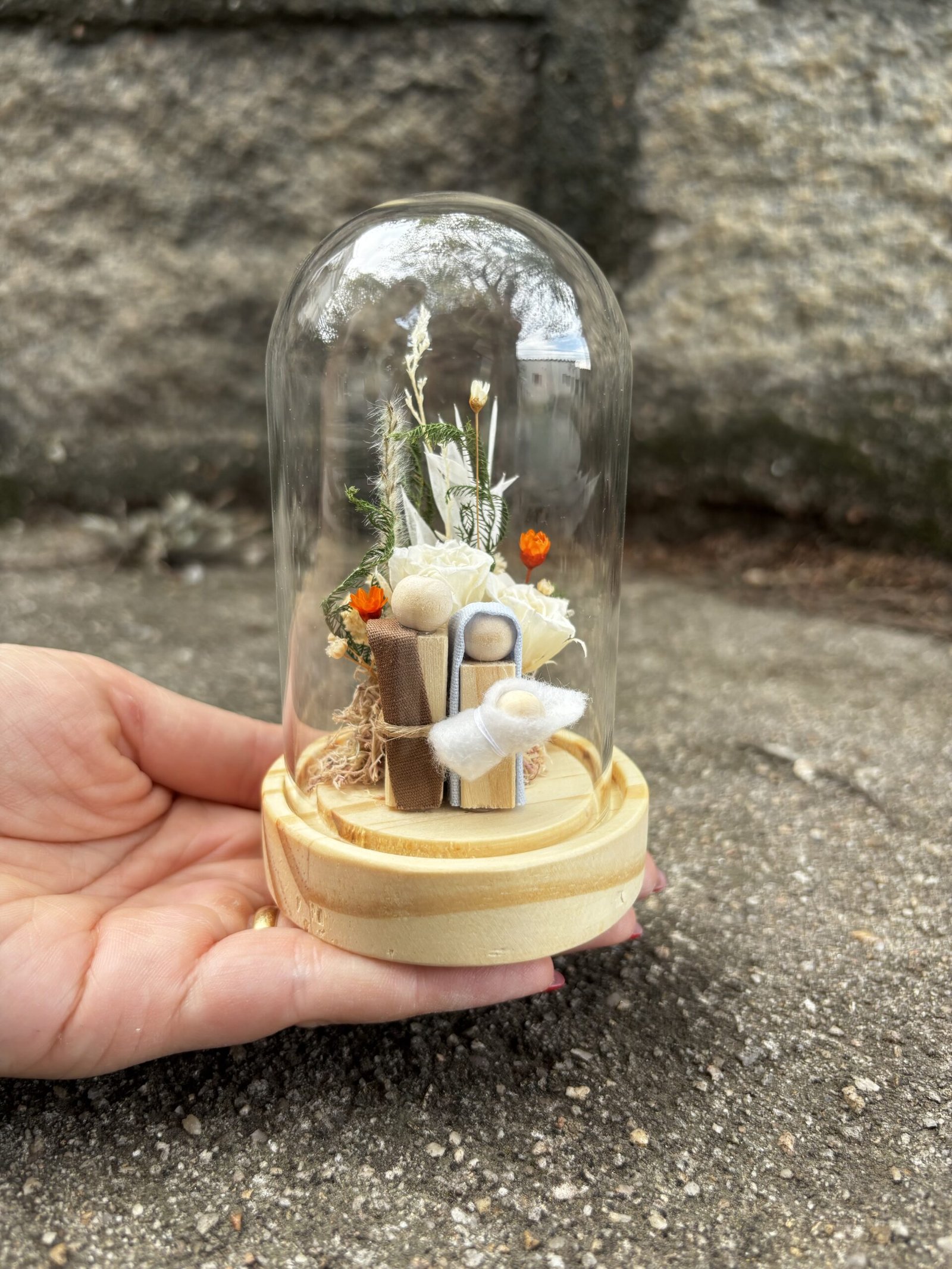 Cada redoma revela a Sagrada Família em um momento de calma, daquele tipo que faz a gente lembrar do que realmente importa: o silêncio, a fé e a doçura do começo de tudo.